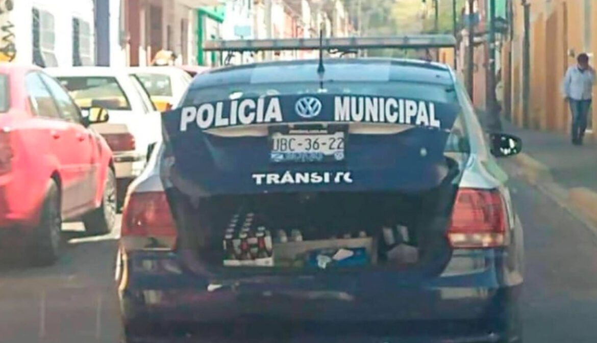 Los oficiales de Tránsito Municipal a bordo de la UBC 3622 transportaban en la cajuela cervezas cartones y six con cervezas.