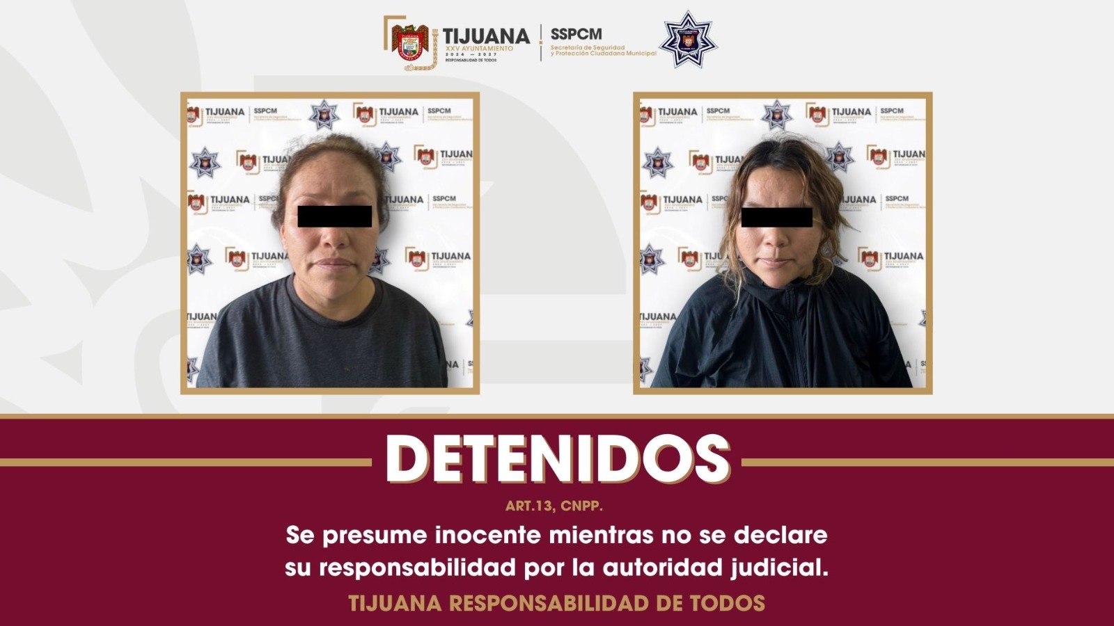 El reporte sobre personas privadas de la libertad en Tijuana derivó en un operativo inmediato en el que también fueron detenidas dos mujeres identificadas como Brisa “N” y Guadalupe “N”, señaladas por las víctimas como presuntas responsables de mantenerlas cautivas.